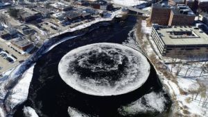 یک صفحه مدور یخی به قطر تقریبا ۹۱ متر در رود پریسامپسکات در شهر وستبروک شکل گرفته است.